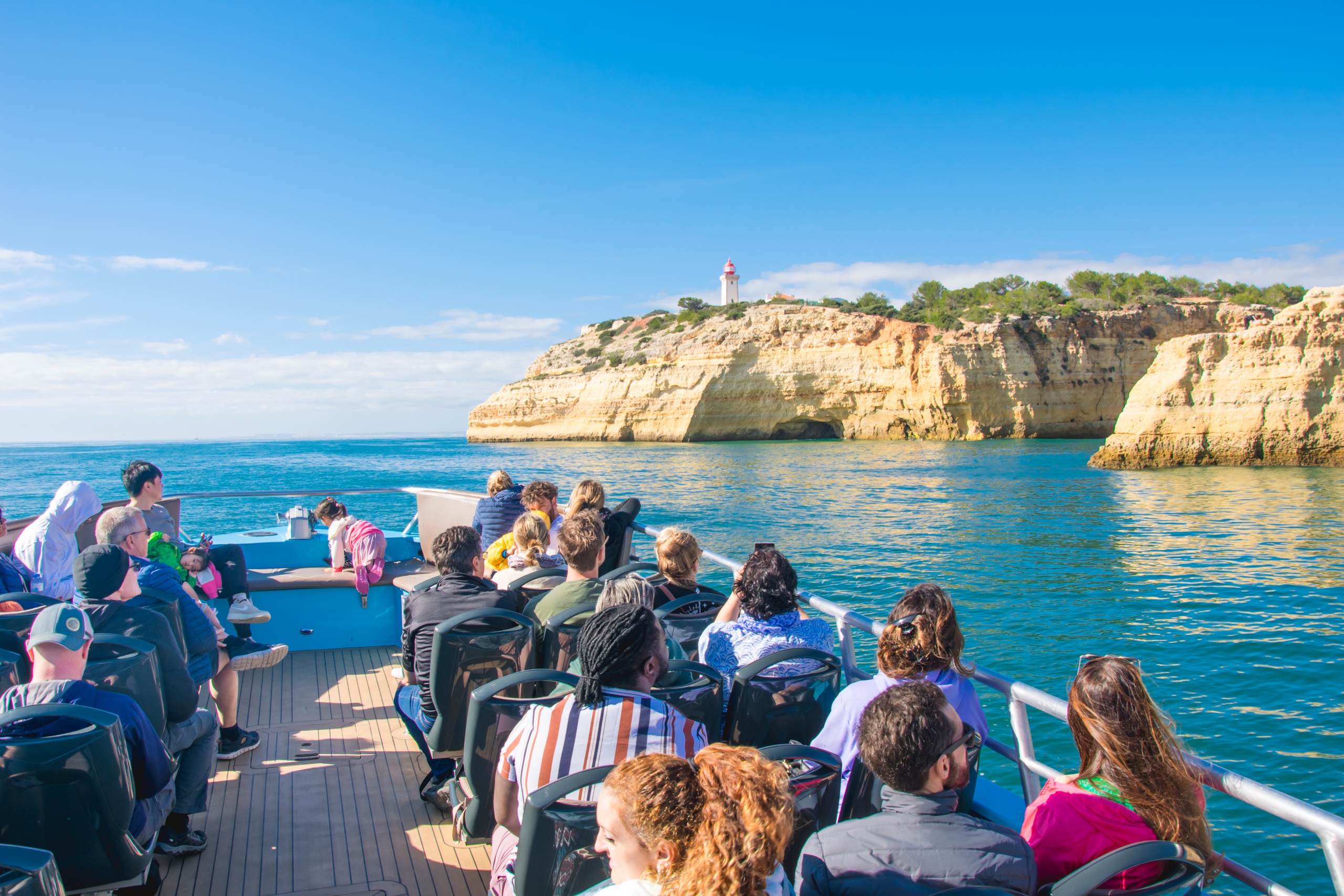 Embarquez pour un voyage passionnant le long de la magnifique côte de l’Algarve, de Portimão à la merveilleuse Praia da Marinha. Vivez une excursion en bateau qui allie confort, plaisir, connaissances et moments inoubliables pour toute la famille. Notre bateau spacieux, d’une capacité de 45 passagers, garantit à chacun un espace pour se détendre et profiter du voyage en toute sécurité.
